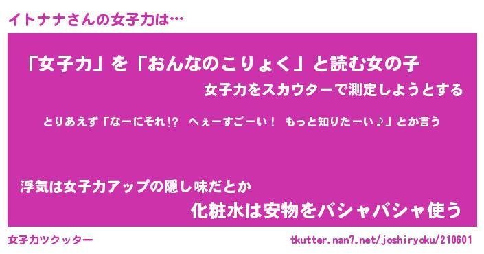 | ファンタジー風あだ名 | 『イトフェル』『エターナルイトナナー』 |