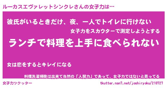 | 料理風あだ名 | 『ネギたっぷりルーカスエヴァレットシンクレの南蛮漬け』 |