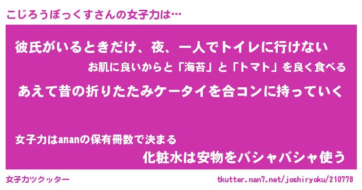 | 女子向けラノベタイトル風あだ名 | 『(仮)こじろうぼっくすのやんごとなき事情』 |