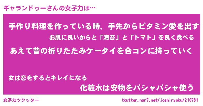 | ヘコむあだ名 | 『ギャっふぃ~』『なまこ酢』 |
