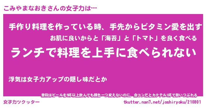 | 自動車の名前っぽいあだ名 | 『コミティマ』『コクア』『デミコ』 |