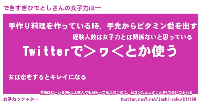 | ヘコむあだ名 | 『できふぇ~』『つくし』『できを』 |
