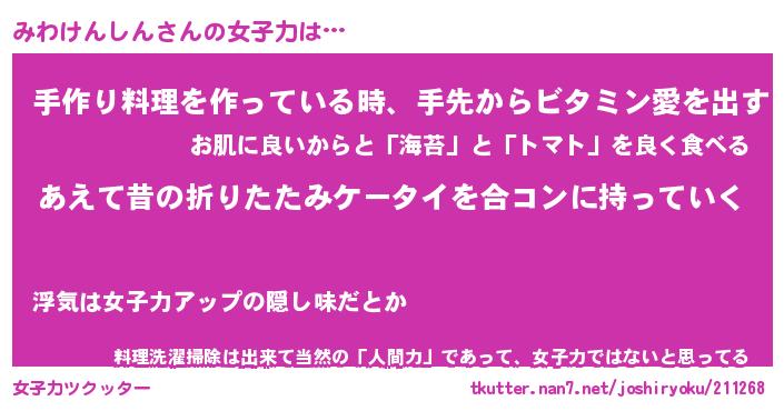 | ヘコむあだ名 | 『みわにー』『レバニラ』『みわっ子』 |