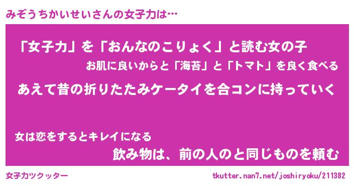 | ピコ太郎風あだ名 | 『ミコ三郎』『ピミ五郎』『ミゾ四郎』 |