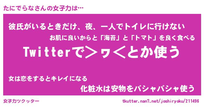 | ファンタジー風あだ名 | 『タニフェル』『エターナルタニデラナー』 |