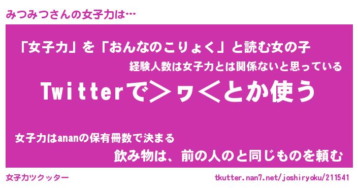 | ファンタジー風あだ名 | 『ミツフェル』『エターナルミツミツー』 |