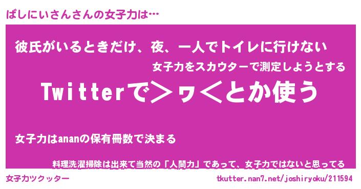 | ヘコむあだ名 | 『ばしっふぃ~』『牛乳』『ばしを』 |