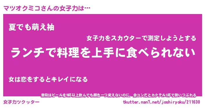 | 恥ずかしいあだ名 | 『プリティーマツオクミコ』『マツっちょ』 |