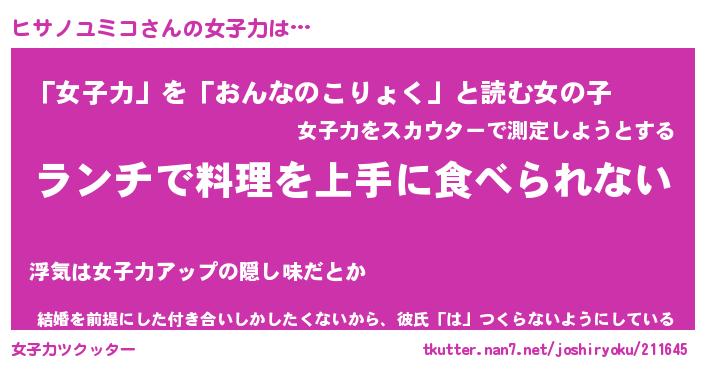 | ヒーロー風カッコイイあだ名 | 『スーパーヒサノユミコ』『暗黒騎士ヒサ』 |