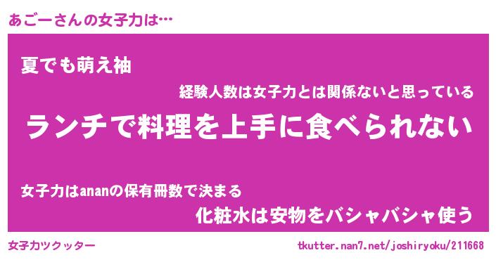 | ファンタジー風あだ名 | 『アゴフェル』『エターナルアゴーー』 |