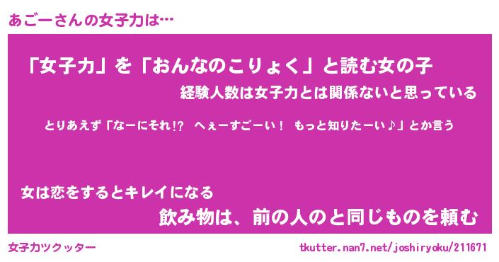 | ファンタジー風あだ名 | 『アゴフェル』『エターナルアゴーー』 |