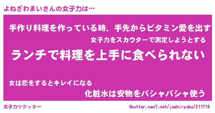 | 恥ずかしいあだ名 | 『プリティーよねざわまい』『よねっちょ』 |