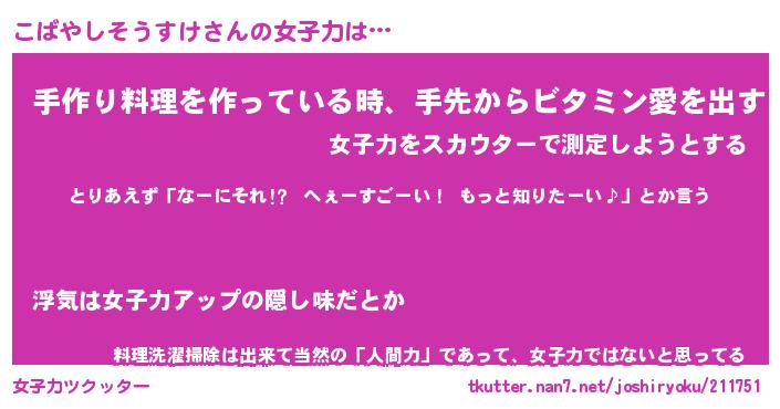 | ヘコむあだ名 | 『こばもー』『酢こんぶ』『こばお』 |