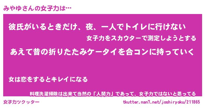 | 恥ずかしいあだ名 | 『プリティーみやゆ』『みやっちょ』 |