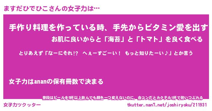 | 恥ずかしいあだ名 | 『プリティーますだひでひこ』『ますちん』 |