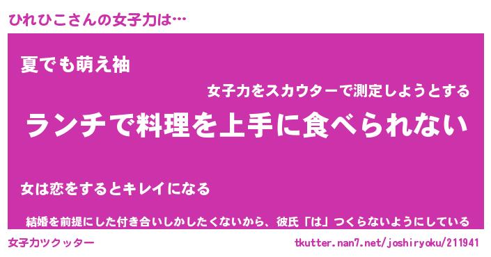 | ヘコむあだ名 | 『ひれもー』『酢こんぶ』 |