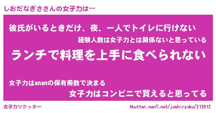 | ヘコむあだ名 | 『しおっふぃ~』『レバニラ』 |