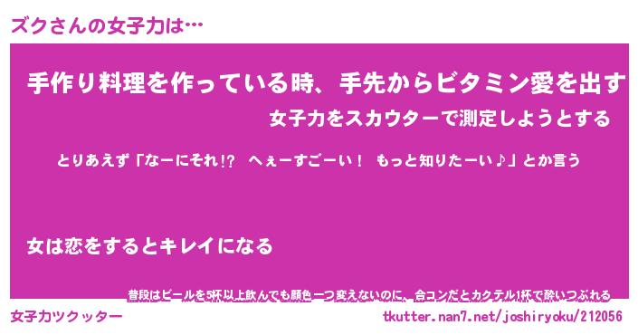| ヘコむあだ名 | 『ズクもー』『つくし』『ズクを』 |