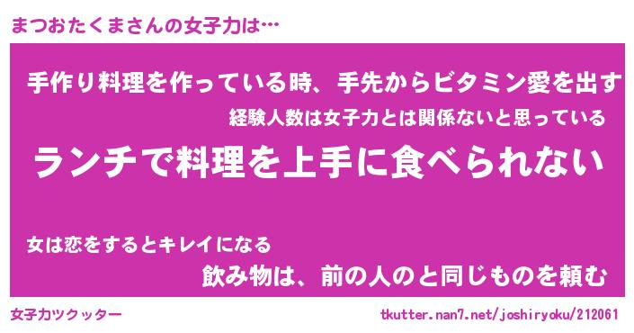 | 恥ずかしいあだ名 | 『プリティーまつおたくま』『まつっちょ』 |
