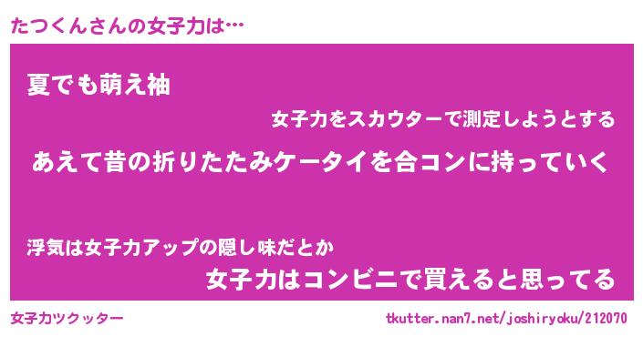 | ファンタジー風あだ名 | 『タツフェル』『エターナルタツクンー』 |