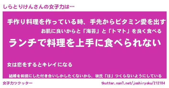 | 恥ずかしいあだ名 | 『プリティーしらとりけん』『しらっちょ』 |