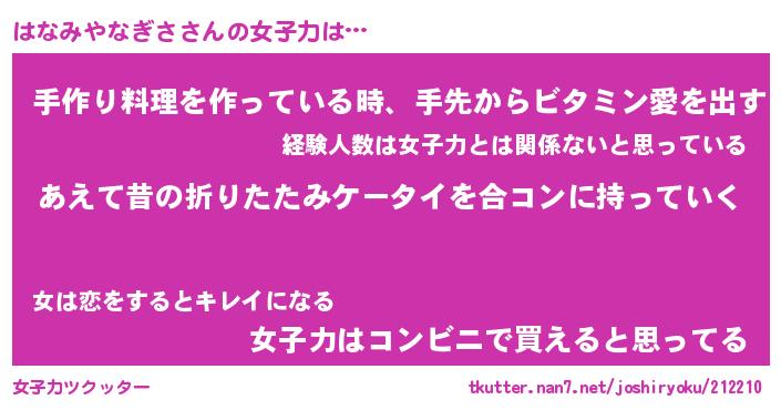| 恥ずかしいあだ名 | 『プリティーはなみやなぎさ』『はなちん』 |