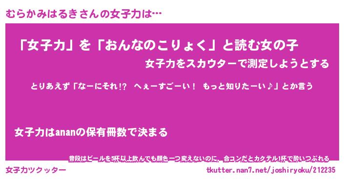 | ヘコむあだ名 | 『むらにー』『つくし』『むらっぺ』 |