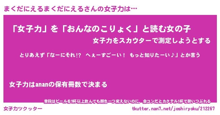 | ヘコむあだ名 | 『まくふぇ~』『豆乳』『まくっちょ』 |