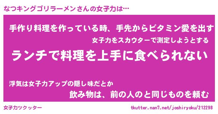 | ヒーロー風カッコイイあだ名 | 『スーパーナツキングゴリラーメン』 |