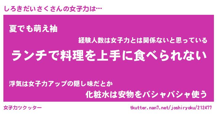 | ヘコむあだ名 | 『しろにゅー』『なまこ酢』 |