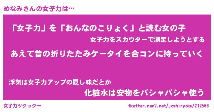 | ファンタジー風あだ名 | 『メナフェル』『エターナルメナミー』 |