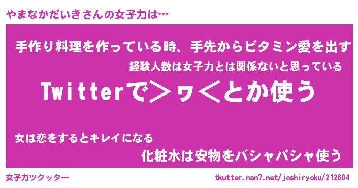 | 恥ずかしいあだ名 | 『プリティーやまなかだいき』『やまちん』 |