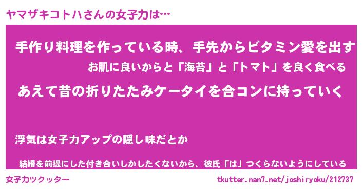 | 恥ずかしいあだ名 | 『プリティーヤマザキコトハ』『ヤマちん』 |