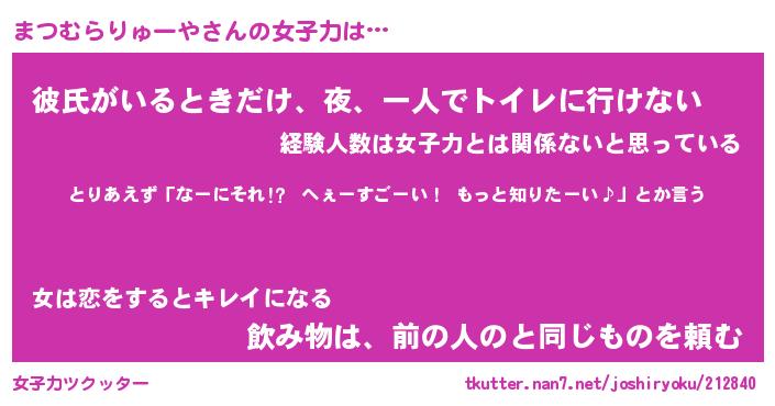 | 女子向けラノベタイトル風あだ名 | 『まつむらりゅーや姫と円卓の騎士』 |
