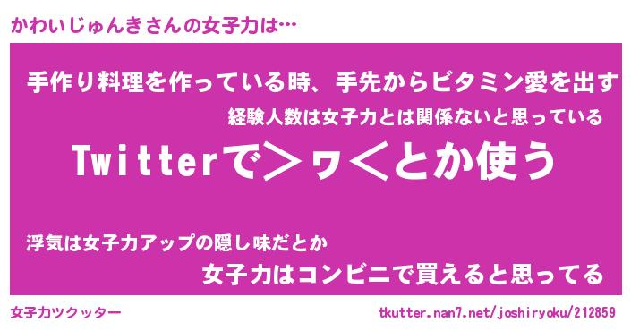 | 女子向けラノベタイトル風あだ名 | 『(仮)かわいじゅんきのやんごとなき事情』 |