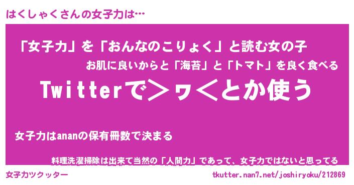 | ヘコむあだ名 | 『はくっふぃ~』『酢こんぶ』 |