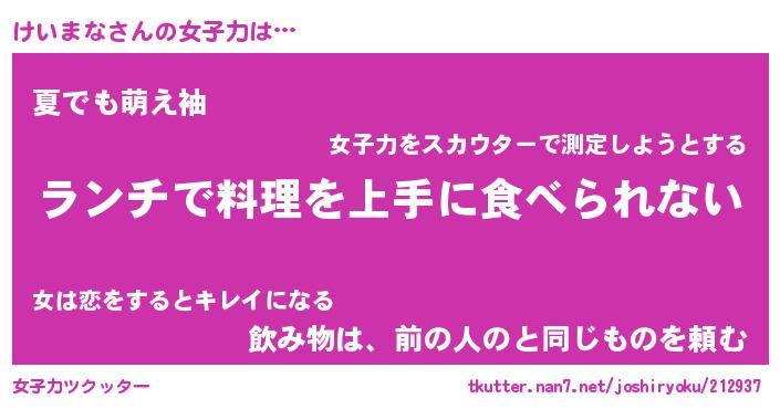 | ヘコむあだ名 | 『けいにゅー』『酢こんぶ』 |