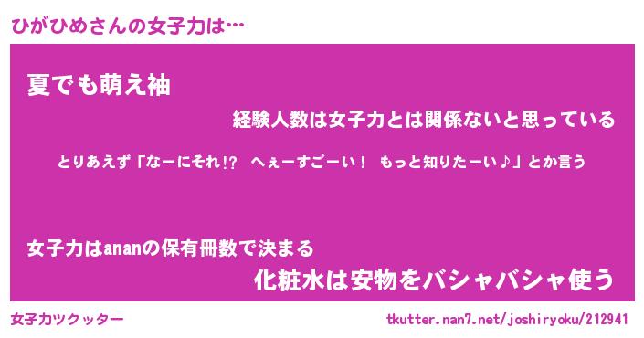| ファンタジー風あだ名 | 『ヒガフェル』『エターナルヒガヒメー』 |