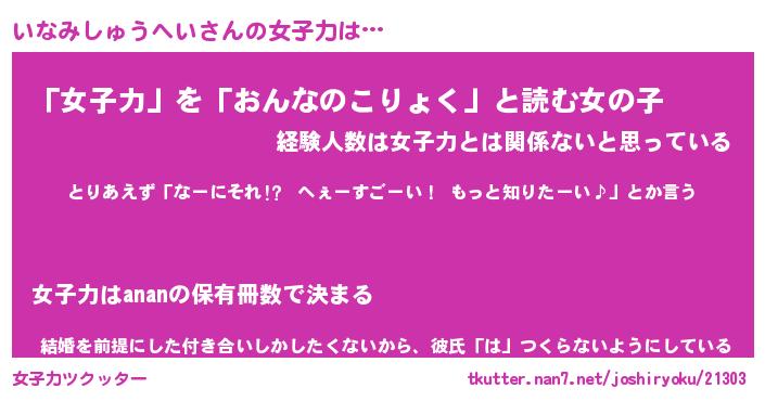 | ヘコむあだ名 | 『いなふぇ~』『酢こんぶ』『いなお』 |