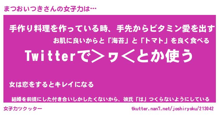 | ヘコむあだ名 | 『まつにゅー』『つくし』『まつ太郎』 |