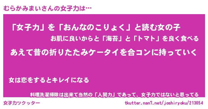 | 恥ずかしいあだ名 | 『プリティーむらかみまい』『むらっちょ』 |