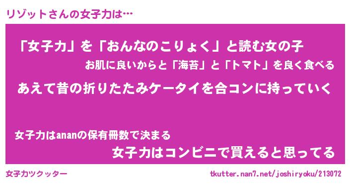 | ファンタジー風あだ名 | 『リゾフェル』『エターナルリゾットー』 |