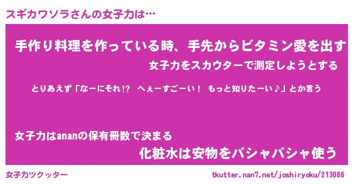 | 胡散臭い通販商品みたいなあだ名 | 『億万長者になれる水晶球…その名も「スギカワソラ」』 |