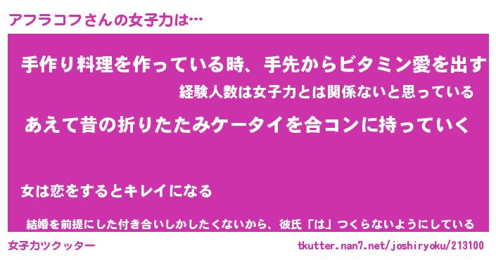 | ヘコむあだ名 | 『アフっふぃ~』『つくし』 |