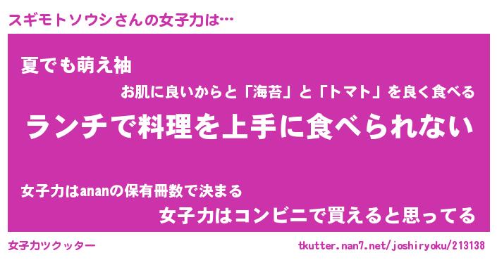 | ヘコむあだ名 | 『スギにー』『レバニラ』『スギお』 |