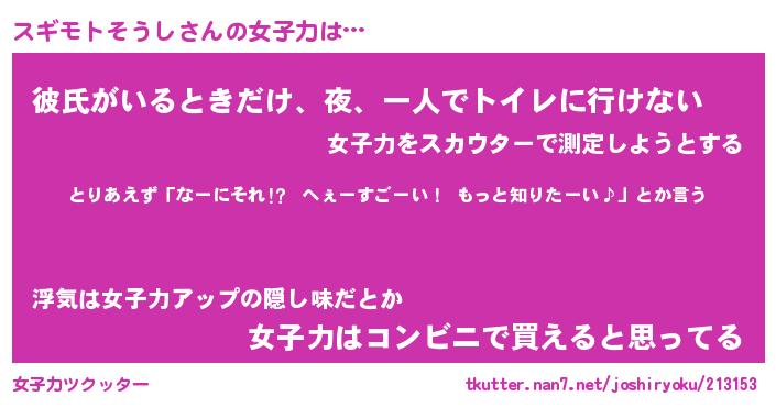 | ヘコむあだ名 | 『スギっふぃ~』『つくし』 |