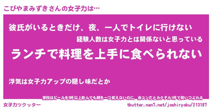 | 恥ずかしいあだ名 | 『プリティーこびやまみずき』『こびちん』 |