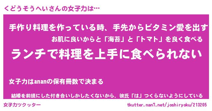 | 恥ずかしいあだ名 | 『プリティーくどうそうへい』『くどちん』 |