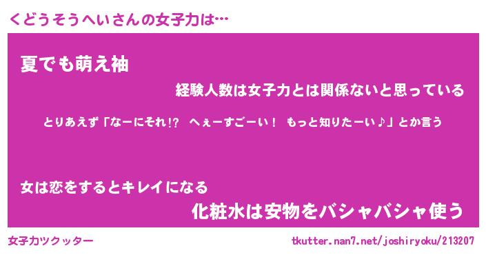 | ヘコむあだ名 | 『くどにー』『豆乳』『くどぷりん』 |