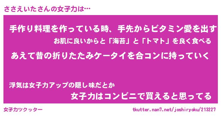 | 恥ずかしいあだ名 | 『プリティーささえいた』『ささっちょ』 |
